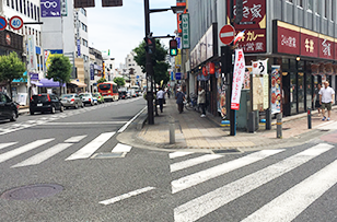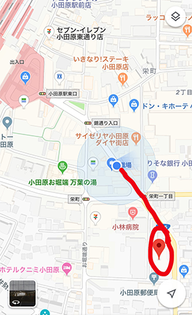 小田原駅東口を出たら、東口を背にロータリーを右に回ります。